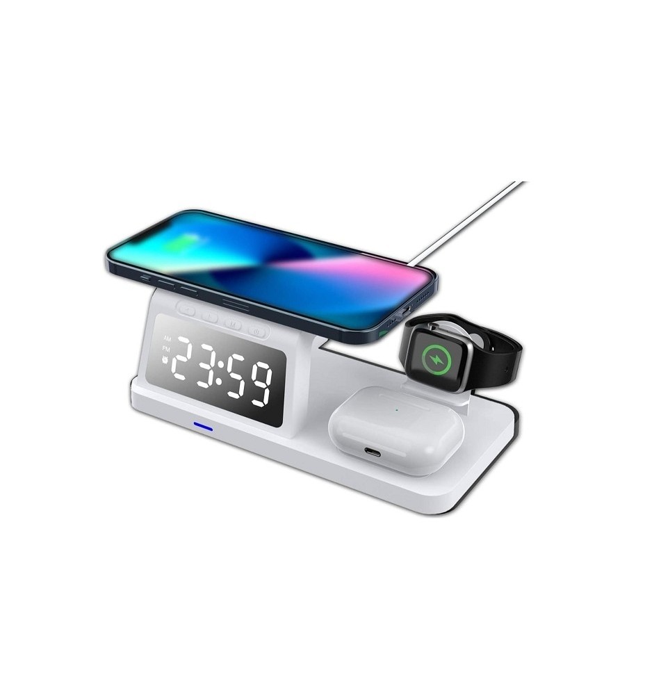 Estación de Carga Inalámbrica 3 en 1 con Reloj Digital de Escritorio Estación de carga inalámbrica con reloj digital de escritorio, estación de carga inalámbrica 3 en 1 de 15 W para teléfonos inteligentes iOS y Android Referencia: FSD1902 ref6086