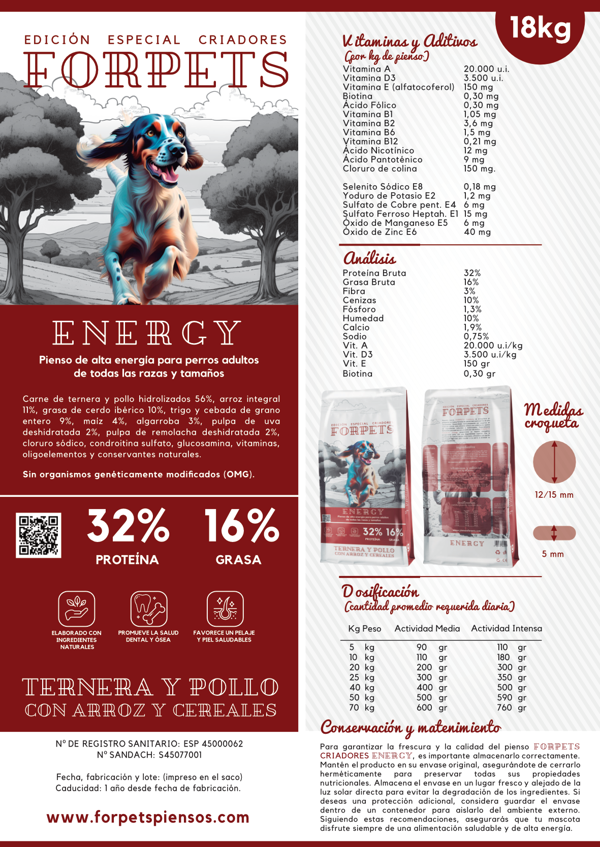 FORPETS CRIADORES ENERGY pienso de alta energía para perros adultos de todas las razas y tamaños. 32% PROTEINA 16% GRASA