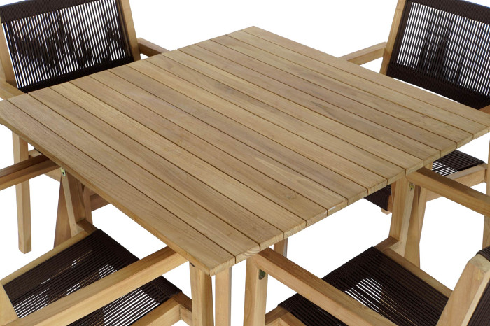 MESA SET 5 TECA CUERDA 90X90X75 54X56X84 MARRON