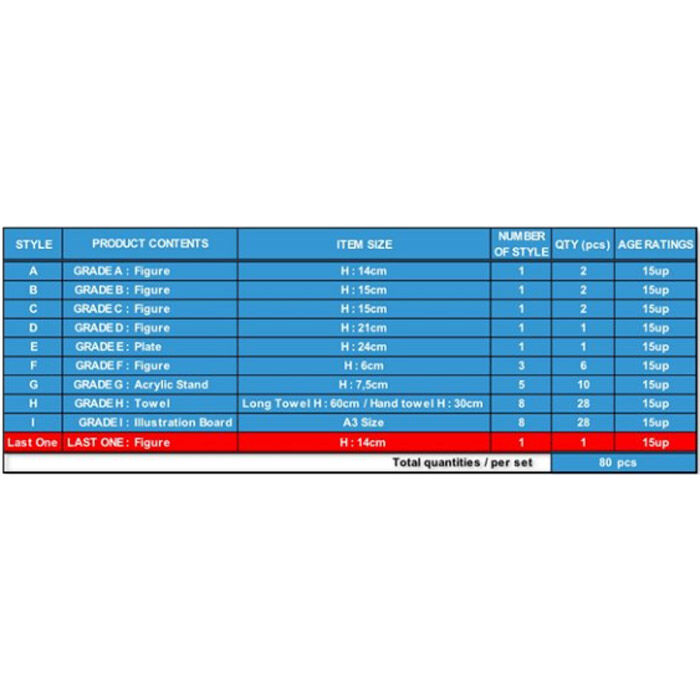 Lotería japonesa con productos de Dragon Ball!. Contiene 80 productos y sus correspondientes 80 tickets sorpresa para canjearlos por los premios obtenidos. Además el ultimo ticket tiene un premio extra añadido al premio de la letra que salga. Esto hará que cuando empiecen a quedar pocos tickets, vuestros clientes compren todos los tickets restantes para poder llevarse el premio especial. Esta figura no se podrá conseguir de ninguna otra forma.