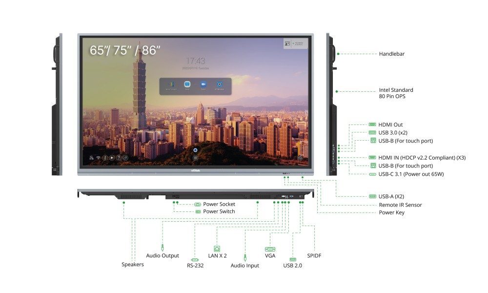 El panel táctil todo en uno 4K UHD lleva las reuniones de negocios y las sesiones educativas a un nuevo nivel de colaboración.